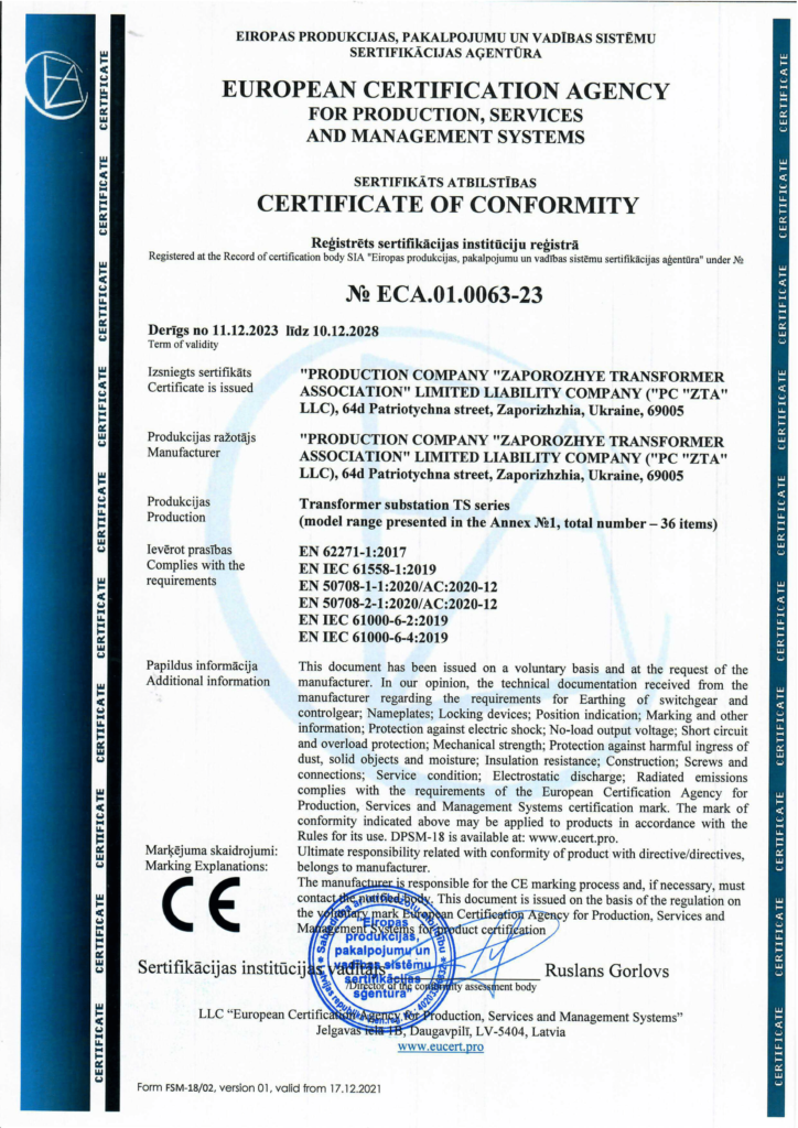 ZTA is a dynamically developing enterprise supplying a wide range of electrical equipment with a voltage class from 6 to 500 kV for consumers in Ukraine and the CIS countries: